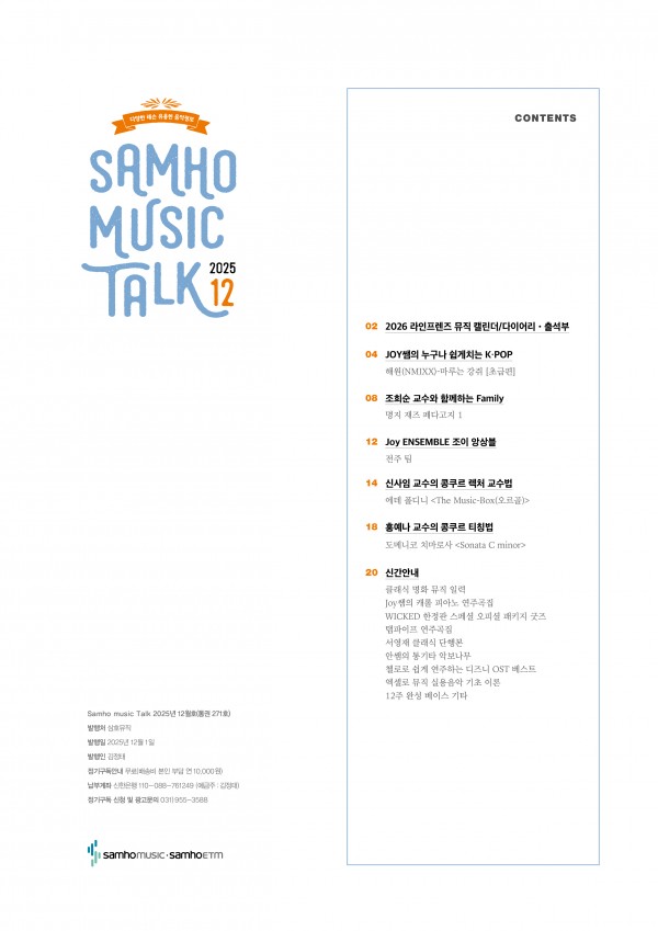 2025년 12월 삼호뮤직톡 표지와 목차입니다 :)