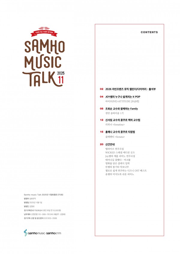 2025년 11월 삼호뮤직톡 표지와 목차입니다 :)